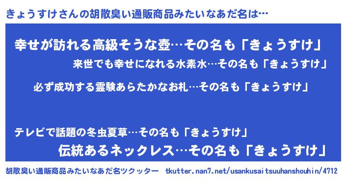 | 男性向けラノベタイトル風あだ名 | 『きょうすけの憂鬱』 |