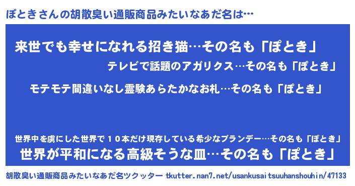| ヘコむあだ名 | 『ぽとっふぃ~』『ぽとき(小並感)』 |