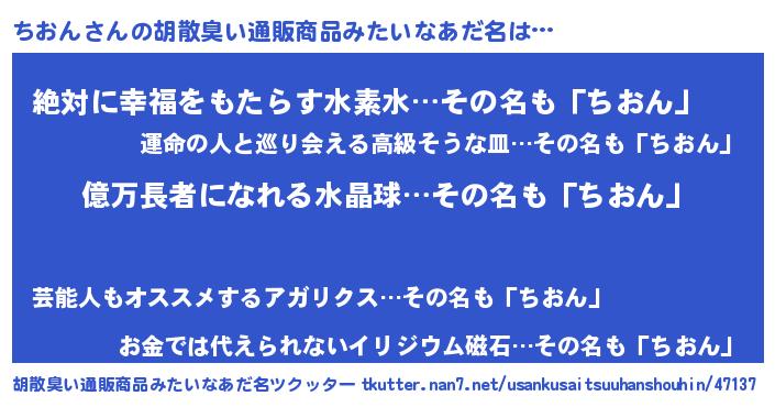 | ヘコむあだ名 | 『ちおもー』『ちおん(震え声)』 |