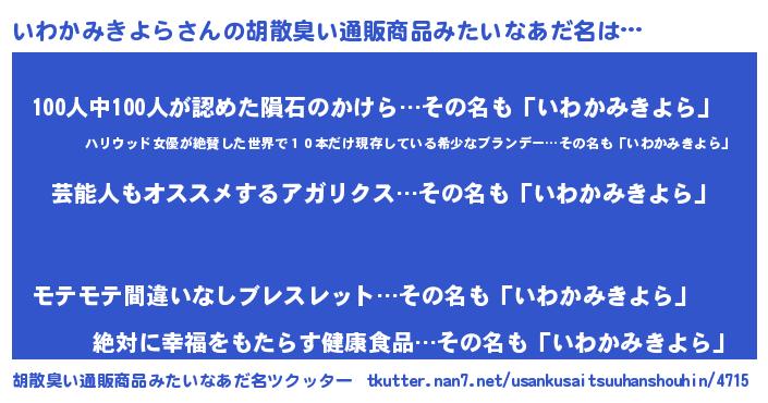 | 肩書あだ名 | 『いわかみきよら総統』 |