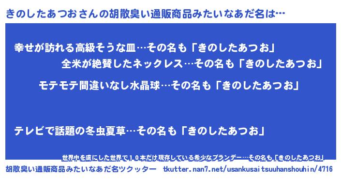 | ヒーロー風カッコイイあだ名 | 『スーパーキノシタアツオ』 |