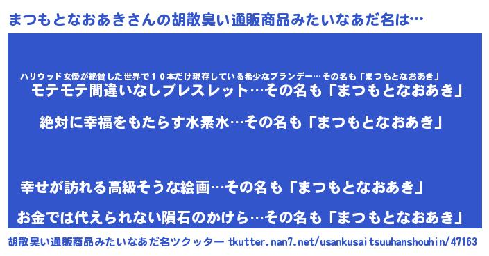 | 意味不明あだ名 | 『永久保存まつもとなおあき』 |