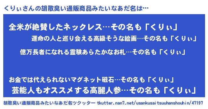 | 意味不明あだ名 | 『ペロリンくりぃ』『自称くりぃ』 |