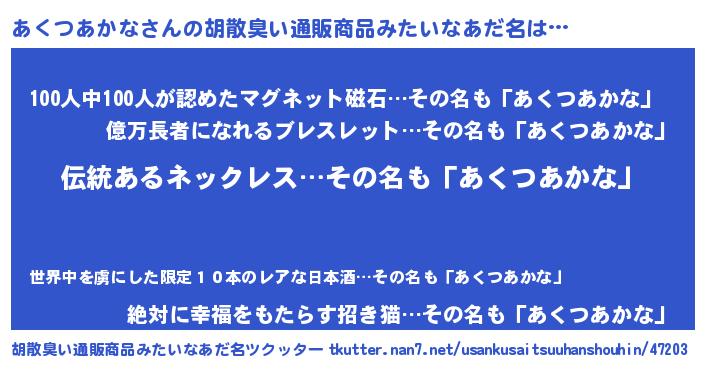 | 意味不明あだ名 | 『とにかく怪しいあくつあかな』 |