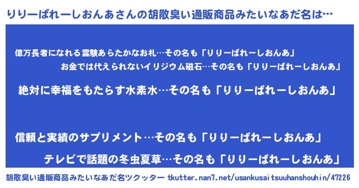 りりーばれーしおんあさんの胡散臭い通販商品みたいなあだ名をツクッター!