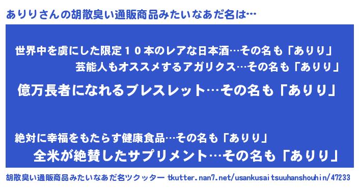 | 意味不明あだ名 | 『ペロリンありり』『自称ありり』 |