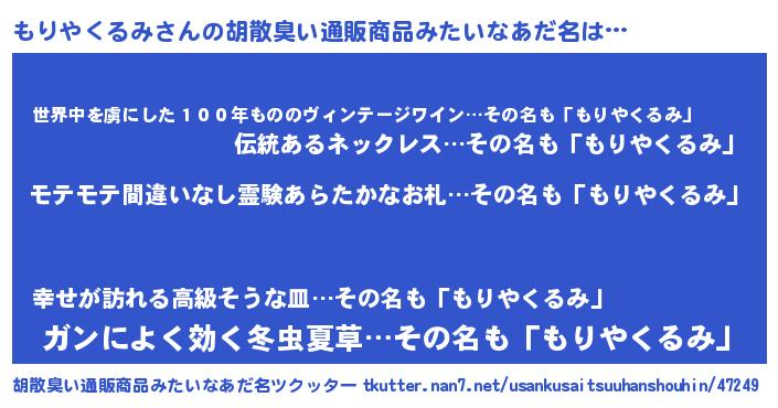 | 恥ずかしいあだ名 | 『プリティーもりやくるみ』『もりっちょ』 |