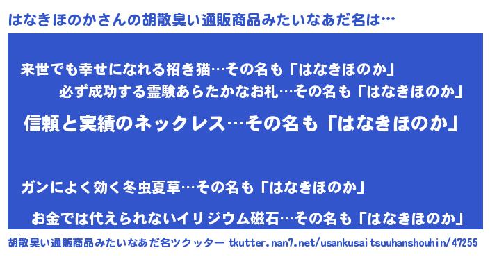 | ヘコむあだ名 | 『はな太郎』『はなきほのか(小並感)』 |
