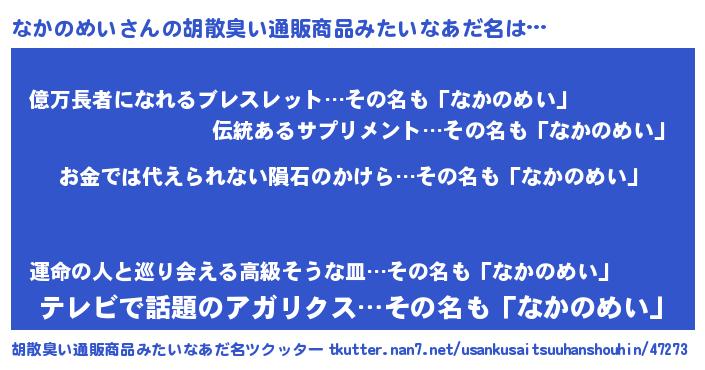 | ヒーロー風カッコイイあだ名 | 『慈愛の使者なかのめい』『銀牙騎士ナカ』 |