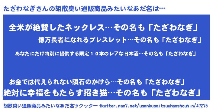 | 欧米人風あだ名 | 『アンジェラ・たざわなぎ』 |