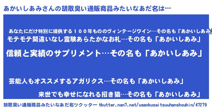| ヘコむあだ名 | 『あか太郎』『あかいしあみ(小並感)』 |