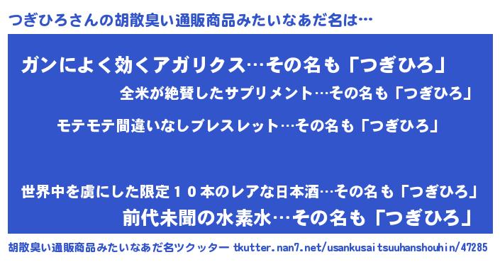 | ヘコむあだ名 | 『つぎふぇ~』『つぎひろ(笑)』 |