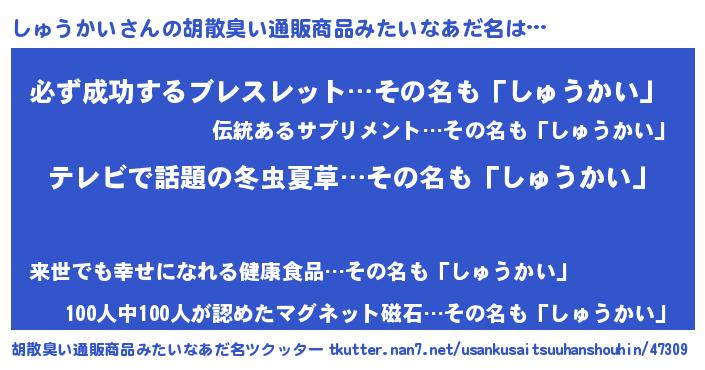 しゅうかいさんの胡散臭い通販商品みたいなあだ名をツクッター!