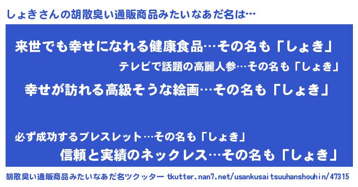| 意味不明あだ名 | 『しょきフォーエバー』『永久保存しょき』 |