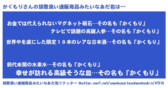 | 欧米人風あだ名 | 『ダレノガレかくもり』 |