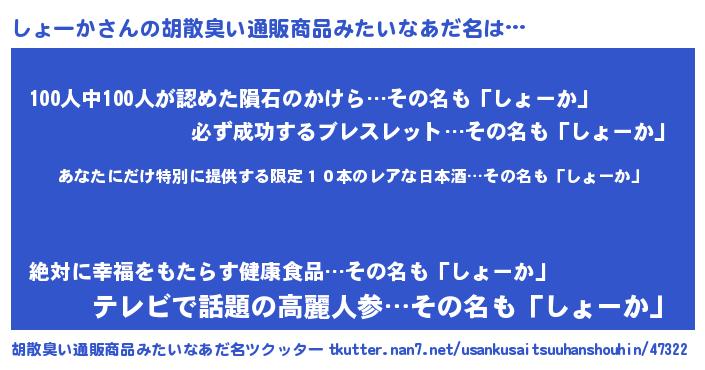 | 意味不明あだ名 | 『住所不定無職しょーか(56歳)』 |