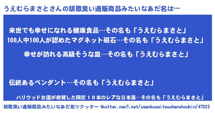 | 意味不明あだ名 | 『うえむらまさとフォーエバー』 |