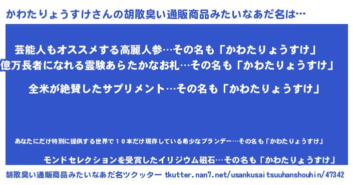 意味不明あだ名 | 『とにかく怪しいかわたりょうすけ』 |