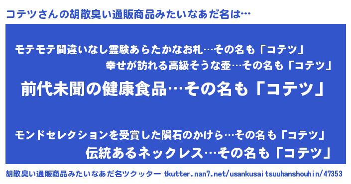 | 恥ずかしいあだ名 | 『コテちん』『プリティーコテツ』 |