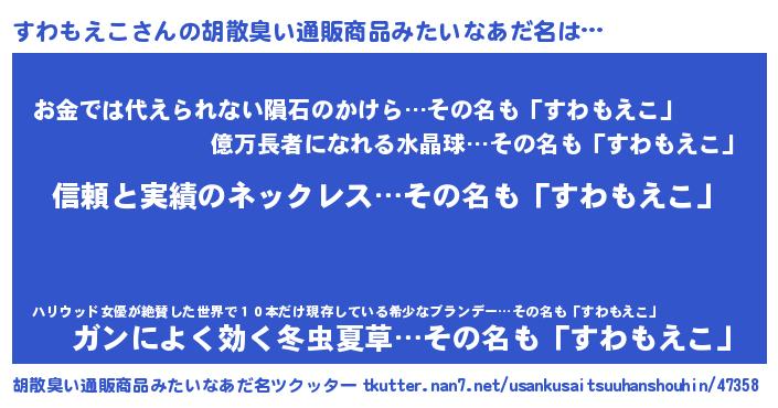 | 意味不明あだ名 | 『とにかく怪しいすわもえこ』 |