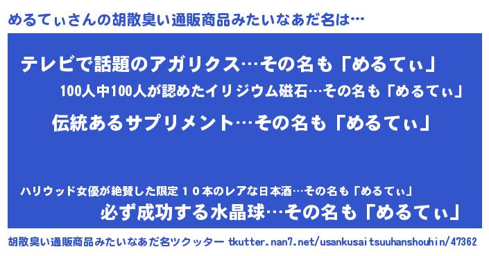 | 意味不明あだ名 | 『とにかく怪しいめるてぃ』 |