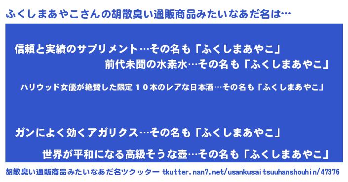 | 欧米人風あだ名 | 『ダレノガレふくしまあやこ』 |