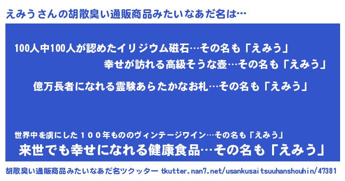 | ヘコむあだ名 | 『えみっふぃ~』『えみう(笑)』 |