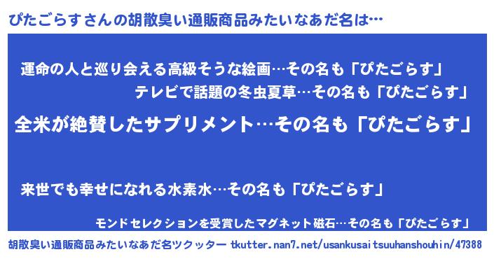 | ヒーロー風カッコイイあだ名 | 『天弓騎士ピタ』『慈愛の使者ぴたごらす』 |