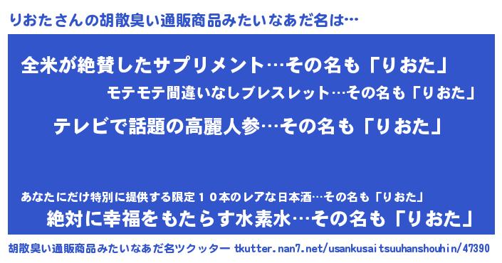 | ヘコむあだ名 | 『りおお』『りおた(笑)』『なまこ酢』 |