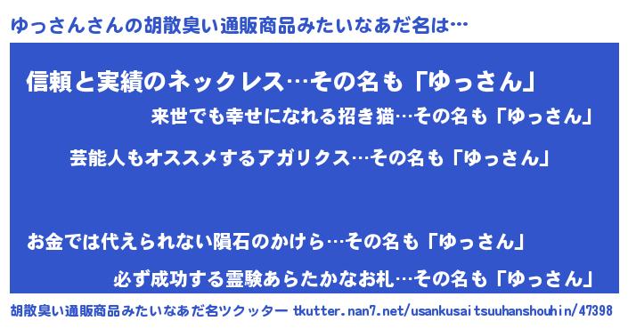 ゆっさんさんの胡散臭い通販商品みたいなあだ名をツクッター!
