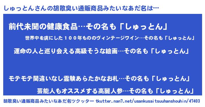 | 意味不明あだ名 | 『しゅっとんフォーエバー』 |