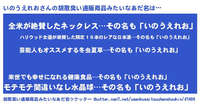 | 意味不明あだ名 | 『自称いのうえれお』 |