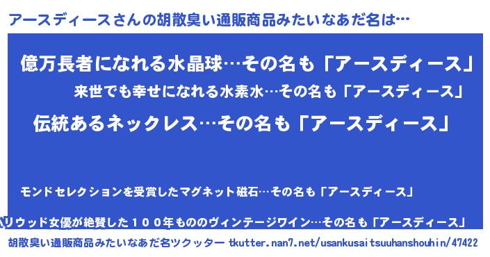 | 女子向けラノベタイトル風あだ名 | 『男装アースディースの憂鬱な任務』 |