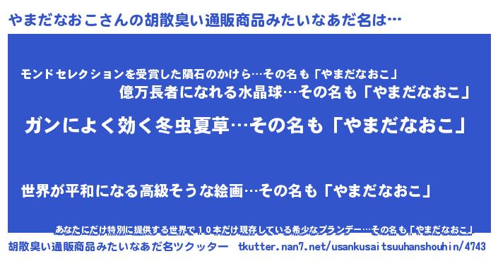 | 意味不明あだ名 | 『自称やまだなおこ』 |