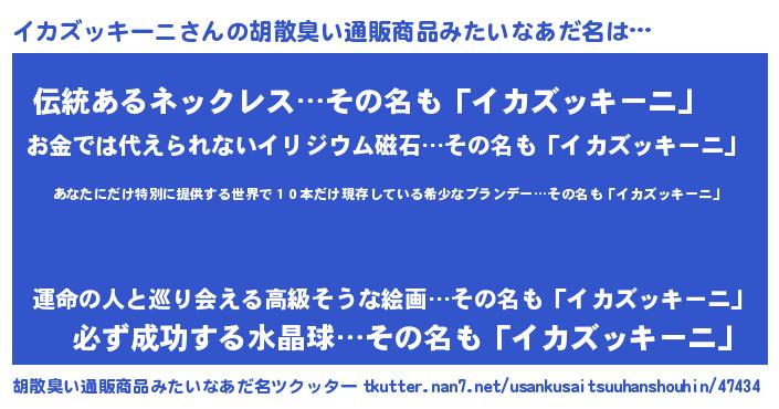 | 意味不明あだ名 | 『住所不定無職イカズッキーニ(84歳)』 |