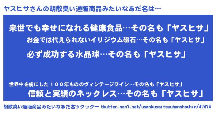 | 男性向けラノベタイトル風あだ名 | 『ヤスヒサの憂鬱』『ヤスヒサスレイヤー』 |