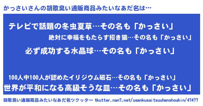 | ヒーロー風カッコイイあだ名 | 『スーパーカッサイ』『最強戦士カッサイ』 |