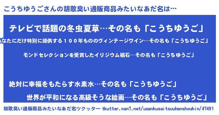 | ヒーロー風カッコイイあだ名 | 『慈愛の使者こうちゆうご』 |