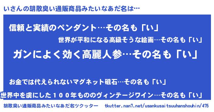 | ヘコむあだ名 | 『いを』『つくし』『い(笑)』 |
