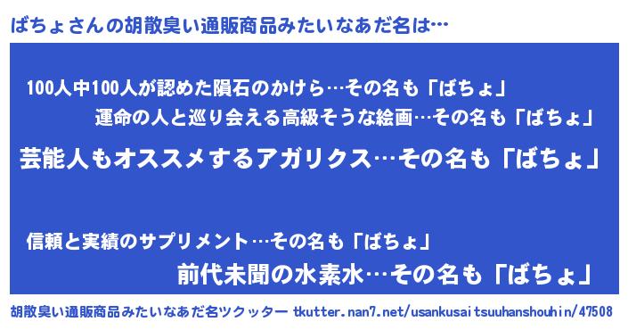 | 意味不明あだ名 | 『自称ばちょ』『眠気覚ましガムばちょ味』 |