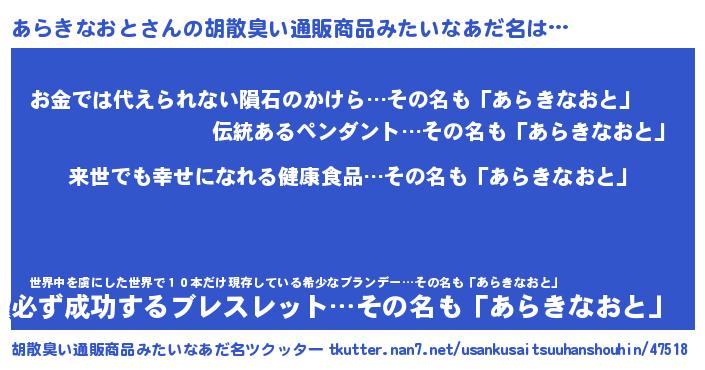 | 意味不明あだ名 | 『永久保存あらきなおと』 |