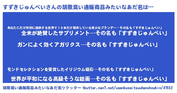 | 肩書あだ名 | 『すずきじゅんぺい総統』 |