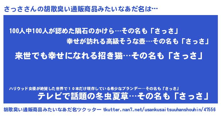 | ヘコむあだ名 | 『さっさ(笑)』『つくし』『さっを』 |
