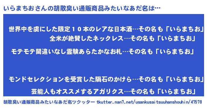 | ヘコむあだ名 | 『いらもー』『いらお』『なまこ酢』 |