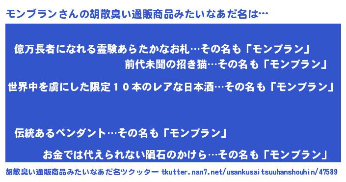 | 意味不明あだ名 | 『住所不定無職モンブラン(14歳)』 |