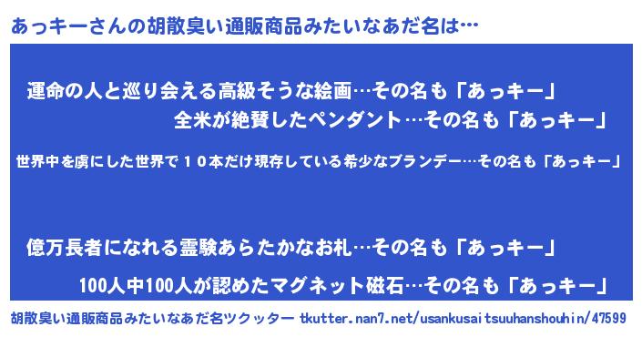 | 女子向けラノベタイトル風あだ名 | 『乙女ゲームの破滅フラグしかない悪役あっキーに転生してしまった…』 |