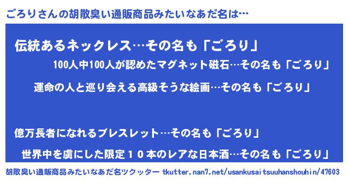 | ヒーロー風カッコイイあだ名 | 『ウルトラごろりマン』『魔戒騎士ゴロ』 |