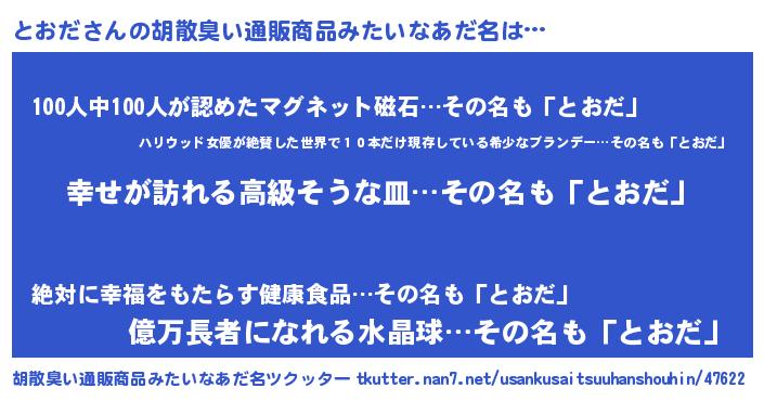 | ポケモン風あだ名 | 『トオダダネ』『トオゴンZ』 |