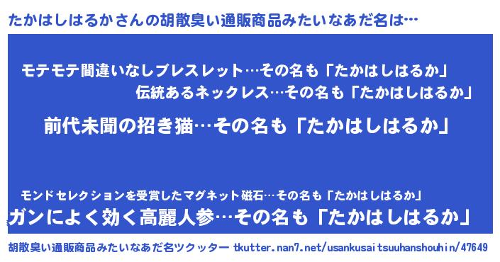 | 意味不明あだ名 | 『永久保存たかはしはるか』 |