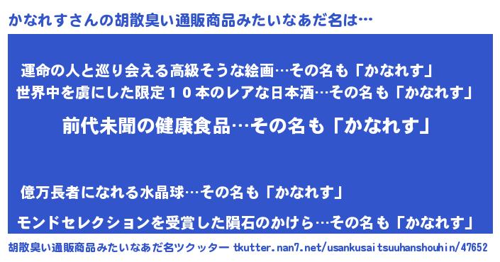 | 意味不明あだ名 | 『永久保存かなれす』『ニラ科かなれす属』 |